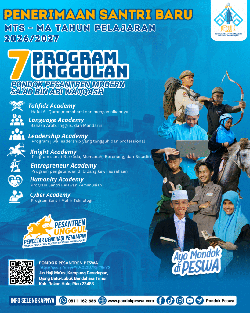 Pesantren Sa’ad bin Abi Waqqas (PESWA) hadir sebagai lembaga pendidikan Islam yang berkomitmen mencetak generasi unggul dalam akhlak, ilmu pengetahuan, dan kemandirian. Salah satu keistimewaan PESWA adalah visinya untuk menjadi pesantren ramah anak, bebas dari kekerasan, dan perundungan.